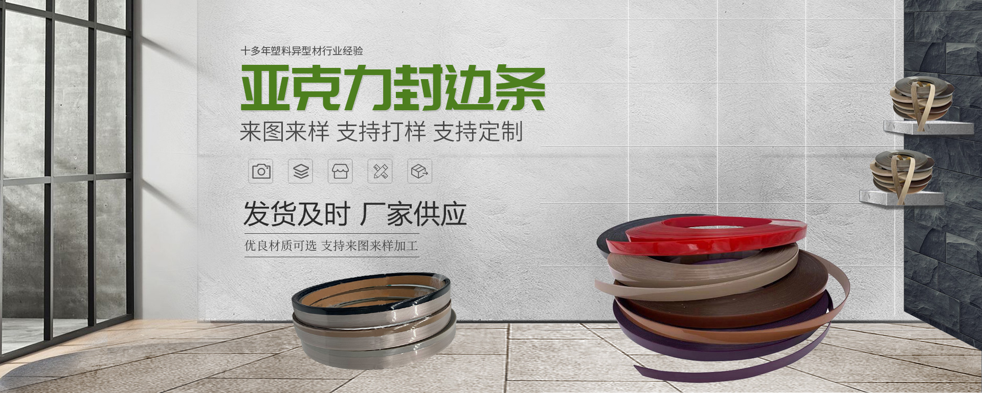 公司自成立以來(lái),不斷創(chuàng)新,與時(shí)俱進(jìn),為家具行業(yè)打造更優(yōu)質(zhì)更環(huán)保的產(chǎn)品和服務(wù)。其主要 生產(chǎn)PVC封邊條,ABS封邊條,亞克力封邊條、異型材、踢腳線(xiàn),等產(chǎn)品專(zhuān)業(yè)生產(chǎn)加工的公司, 擁有完整、科學(xué)的質(zhì)量管理體系。東莞市佐菲特裝飾材料有限公司的誠(chéng)信、實(shí)力和產(chǎn)品質(zhì)量獲 得業(yè)界的認(rèn)可。歡迎各界朋友蒞臨參觀(guān)、指導(dǎo)和業(yè)務(wù)洽談。